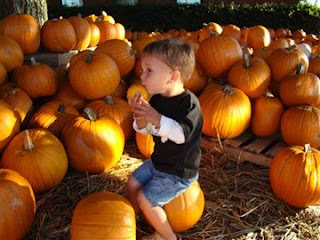 Please note the "My First Christmas" socks!! This is what he wanted to wear all day Saturday:)And finally, yesterday I took Braxton to the local Pumpkin Patch. We met one of his best buddies Olivia and her mommy Miss Karen. They had a great time. Braxton and O picked up every itty bitty pumpkin they could put their grubby little hands on. Braxton loved the fact of having wagons there to load with pumpkins...or Olivia!